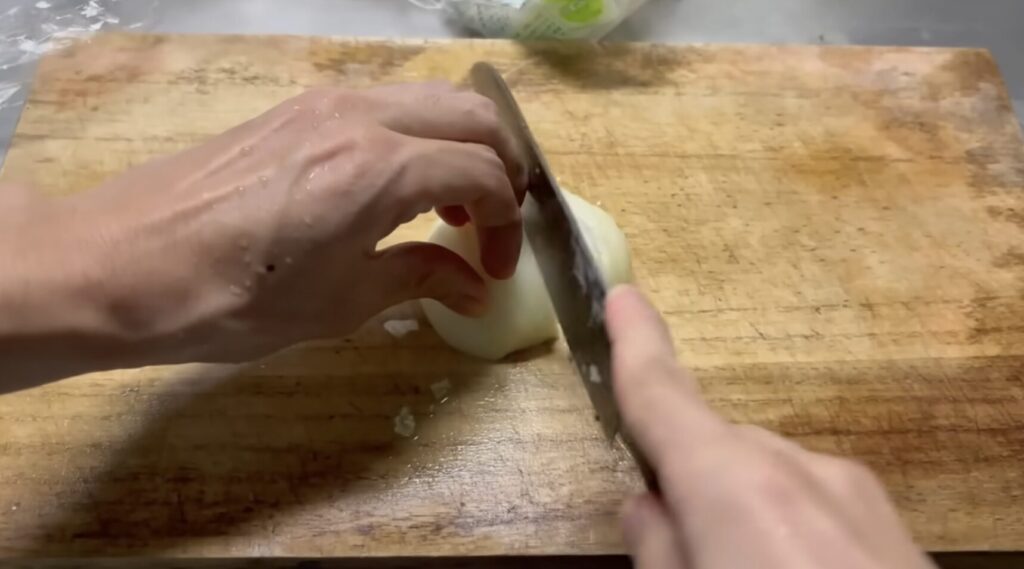 にんにくの皮を剥いて、すりおろしていきます。