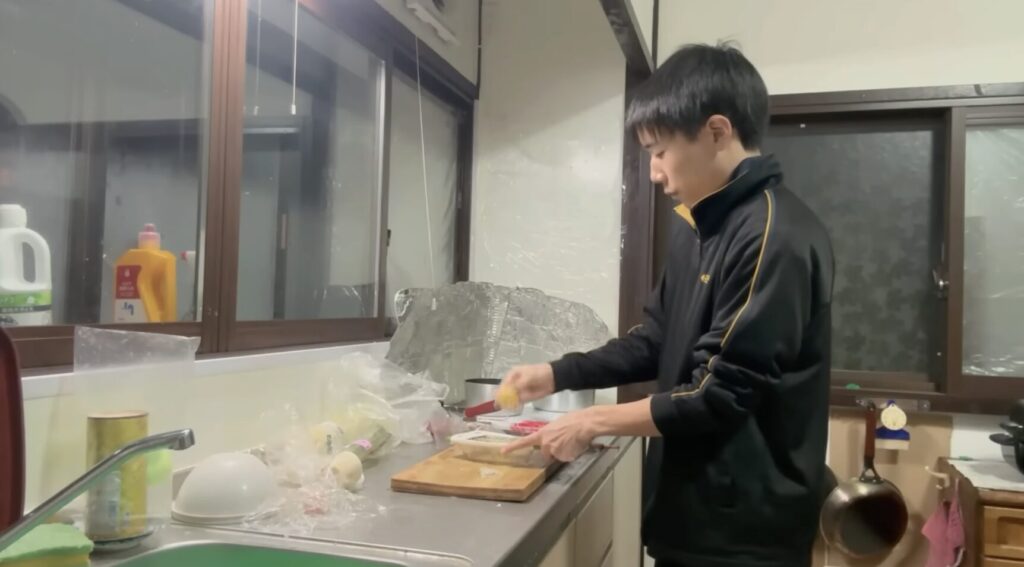 麺を茹でるのを忘れていたことに気づき、急いでお湯を沸かします。