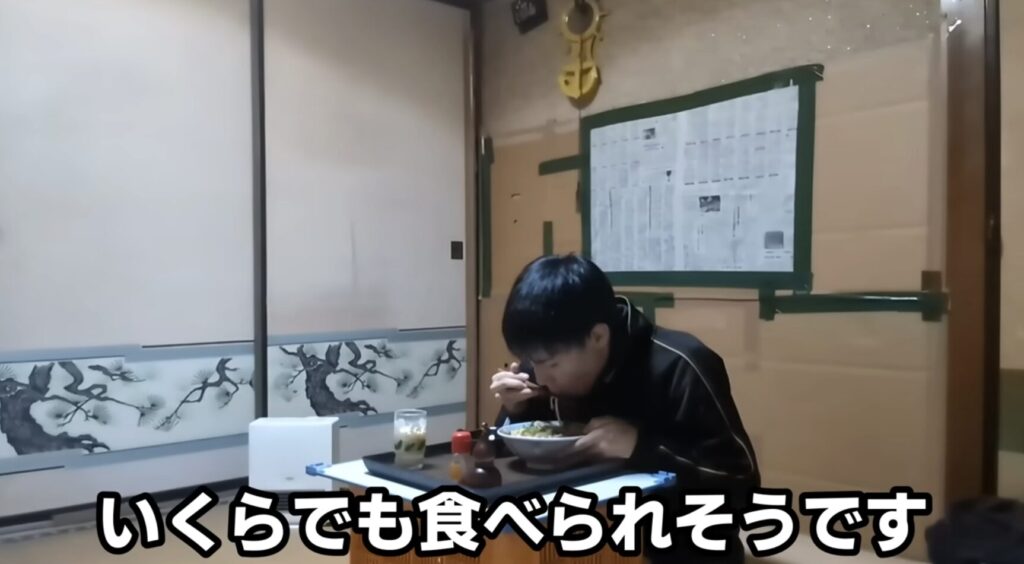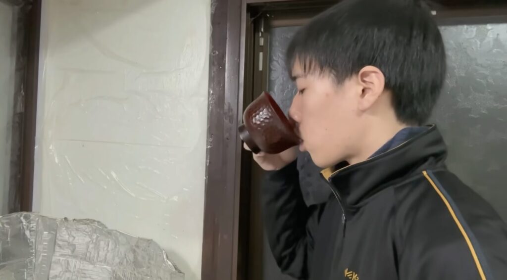 まずは豆乳を飲んで、続いて熱々のうどんを食べます。