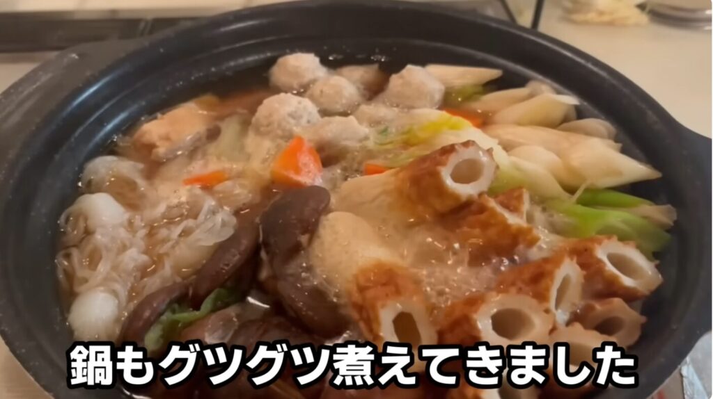 つみれも丁寧に並べ入れ、彩り豊かな鍋が完成しました。