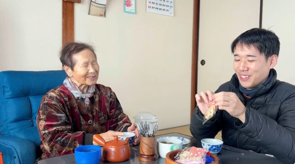 きのえおばあちゃんとの 穏やかな会話とひろくんの優しさが