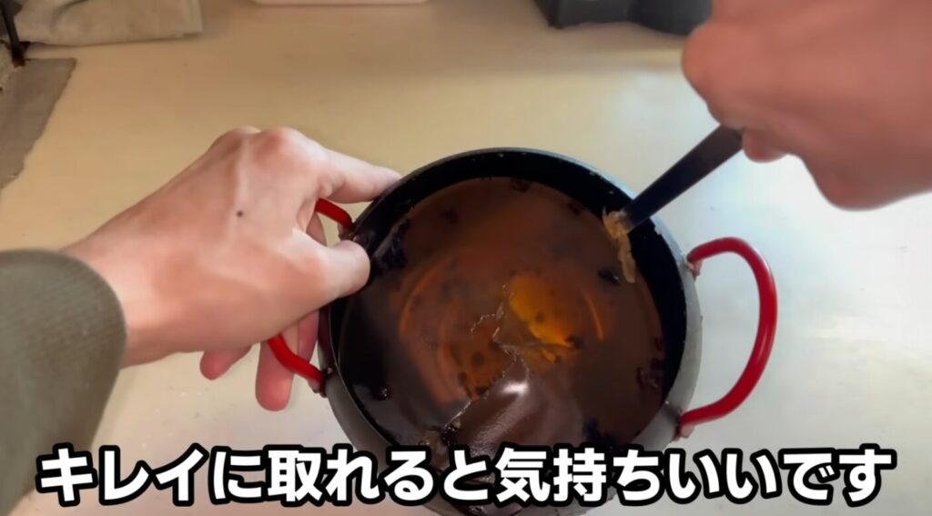 古い油を固めておいたものがキレイに取れると、とても気持ちいいです。