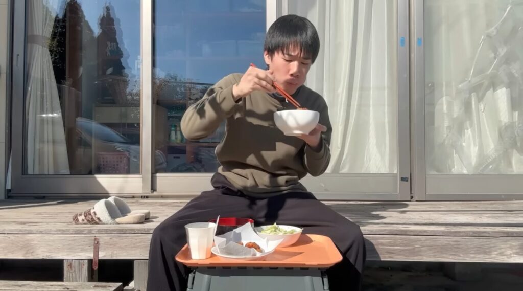 ベランダに料理を持ってきて、今日のごはんの準備が整いました。