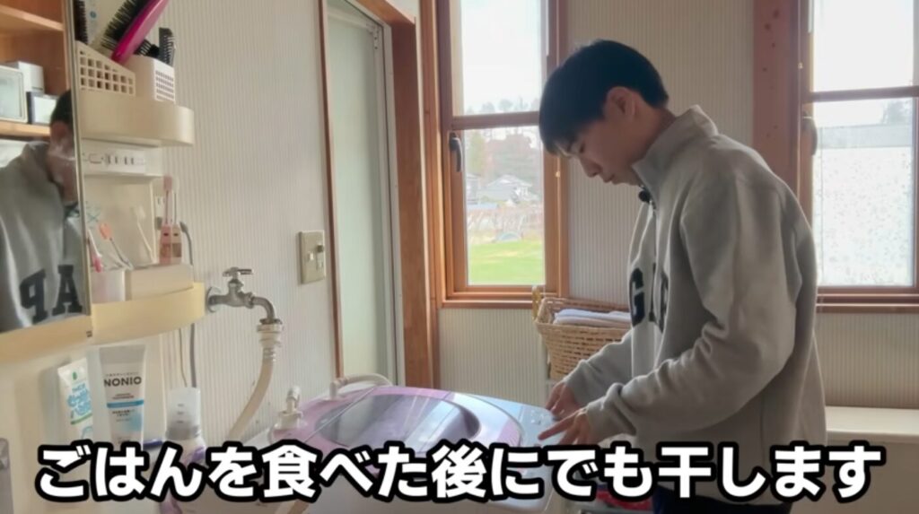 朝食を食べた後に干す予定で、まずは食事の準備に取り掛かります。