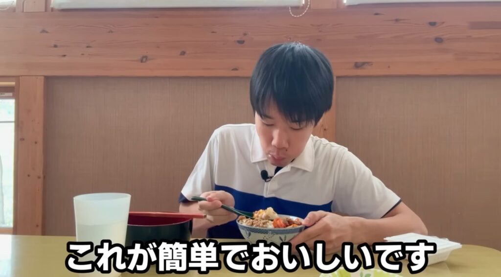 ご飯に納豆、キムチ、生卵をのせて健康のために食べています。