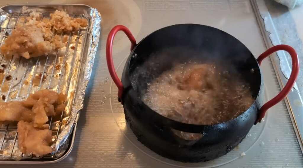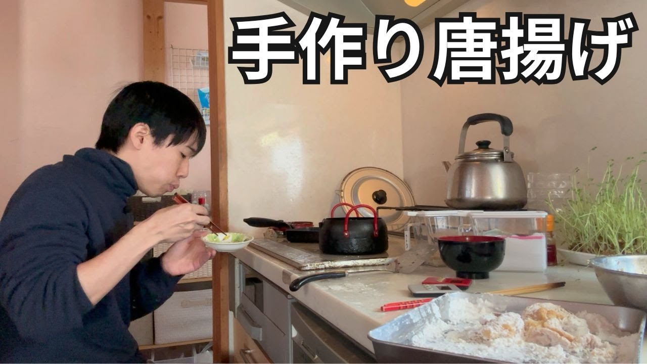 顔を洗ってスッキリした後、キッチンで朝から唐揚げ作りを始めました。