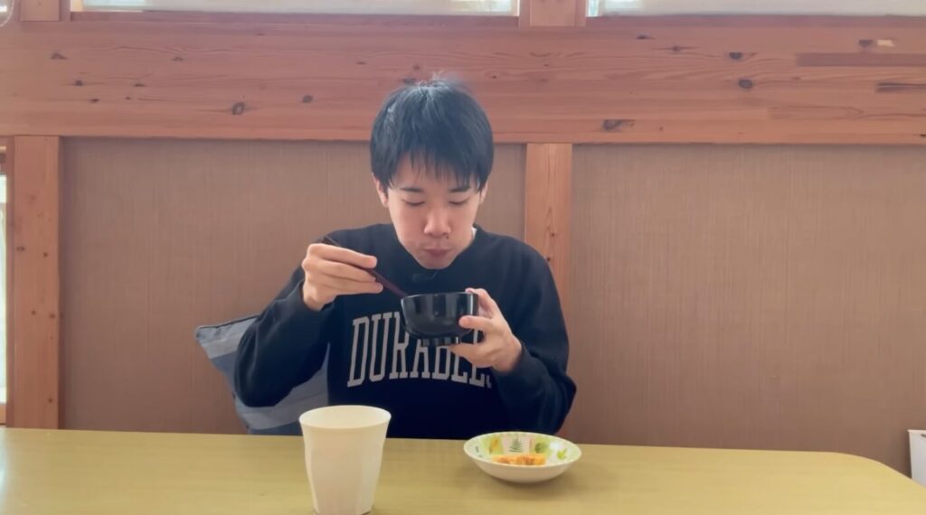 「いただきます」をして、ラーメンを食べ始めます。