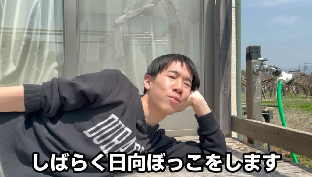 外で日向ぼっこをする穏やかな時間