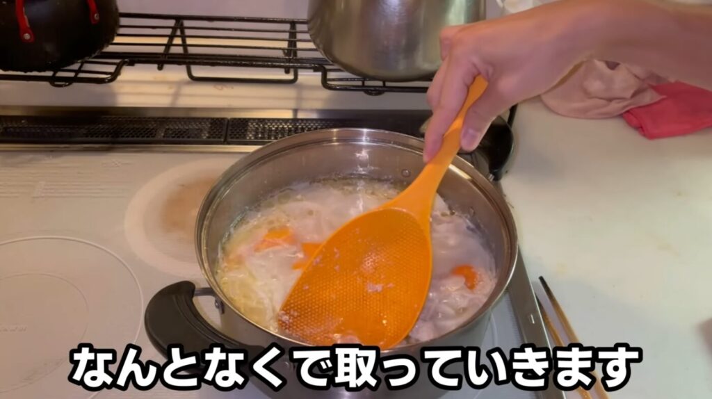 正直どれが灰汁なのかわかりませんが、なんとなくで取っていきます。