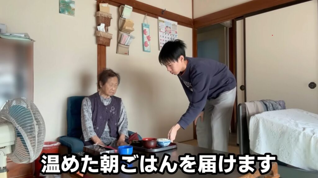 片付けが終わったころ、おばあちゃんが起きてきました。温めた朝ごはんを届けます。
