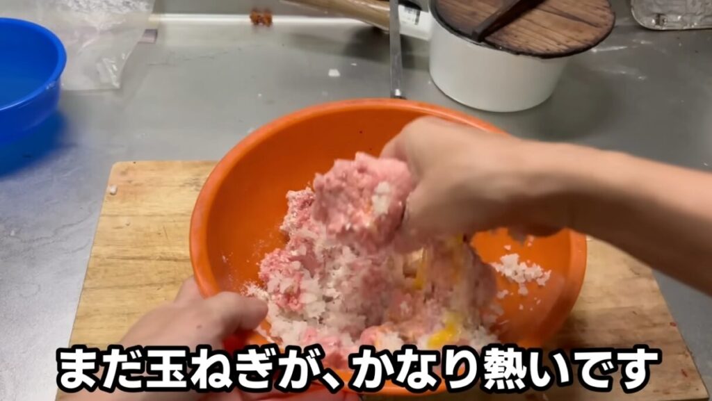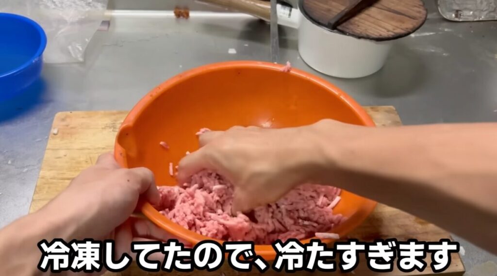 冷凍のひき肉を使ったので、手が冷たすぎました💦