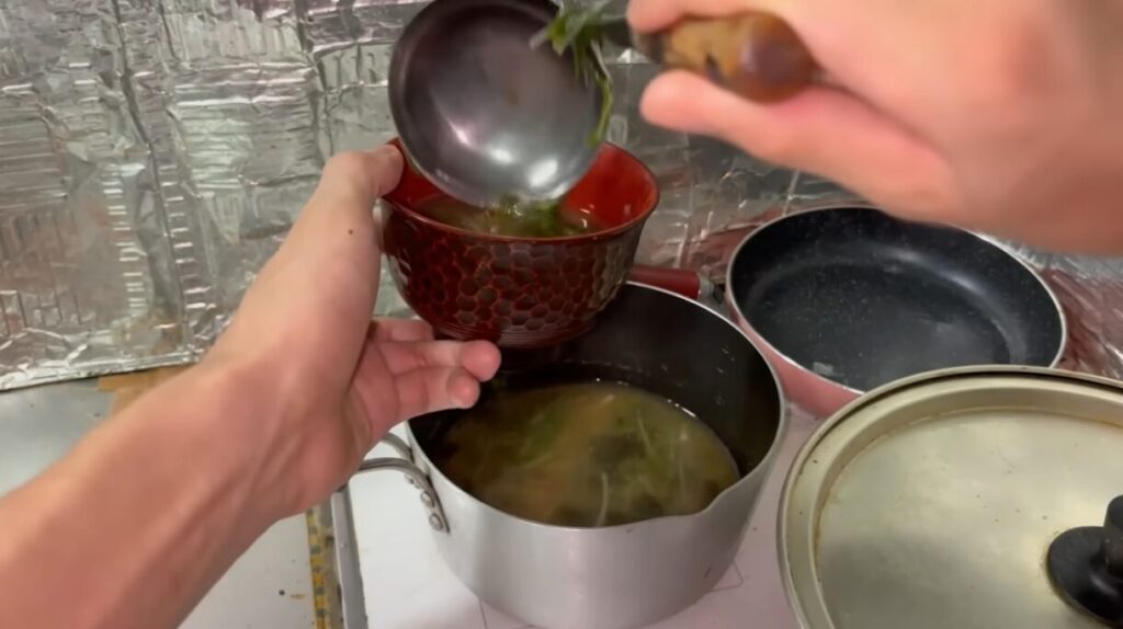 自家製のお味噌を溶き入れ、具材もじゅうぶん柔らかくなったら、味噌汁の完成です