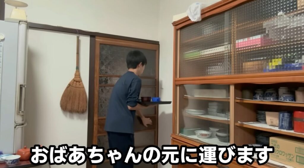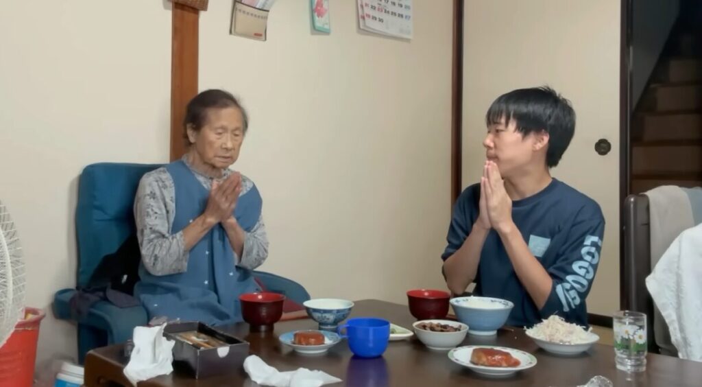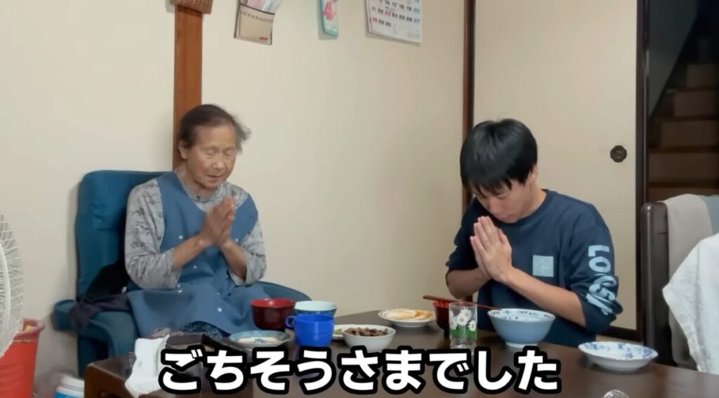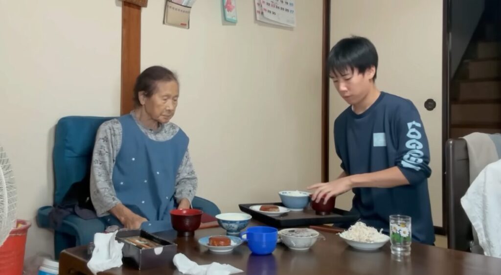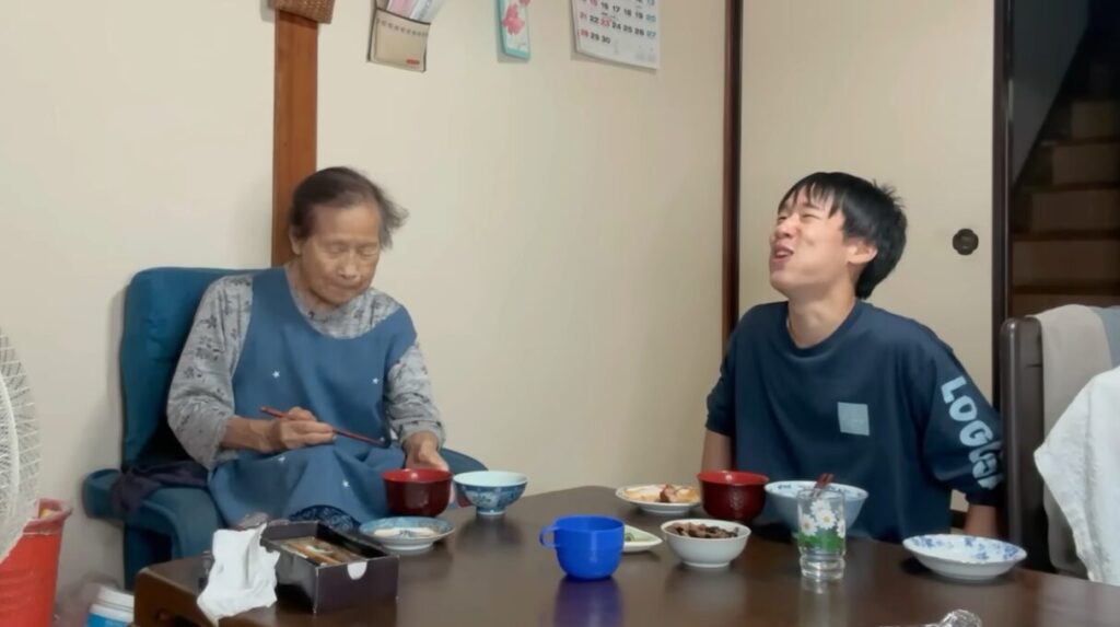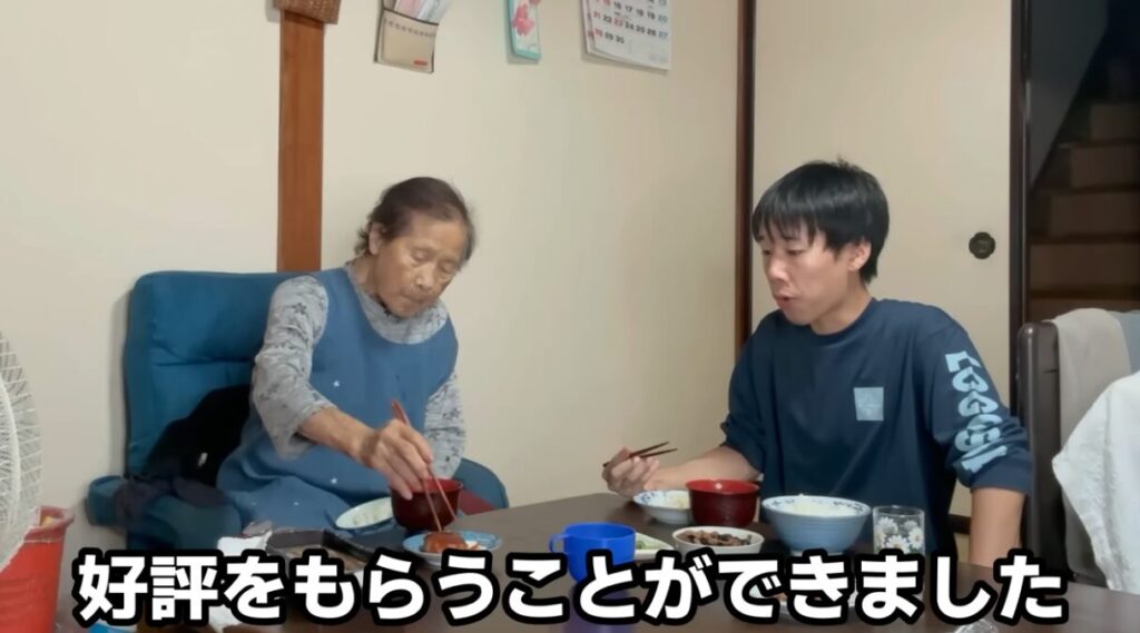お孫さんにご飯作ってもらえて幸せなおばあさん。