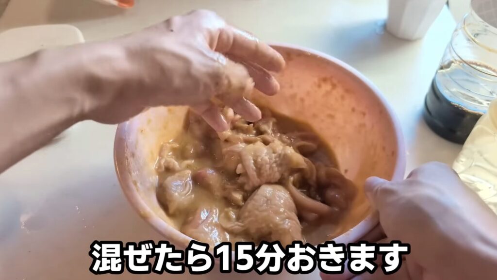 お肉を揉んだりもするので、手はしっかり洗っておきます。