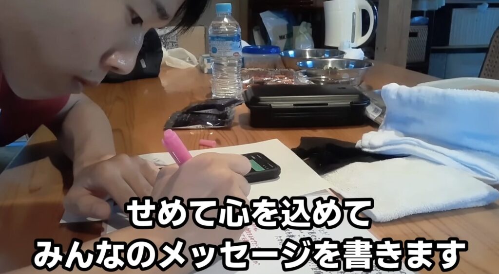 寄せ書きと低温調理の下準備