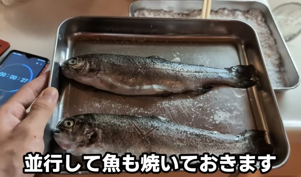 並行して川魚も焼いておきます。