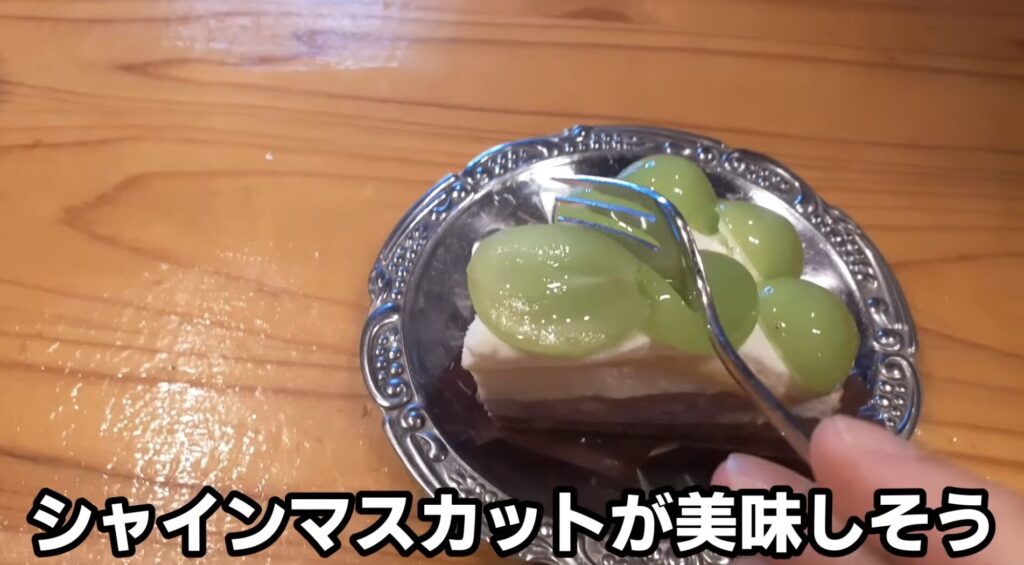 シャインマスカットとケーキが同時に味わえるなんて、本当に贅沢ですね。